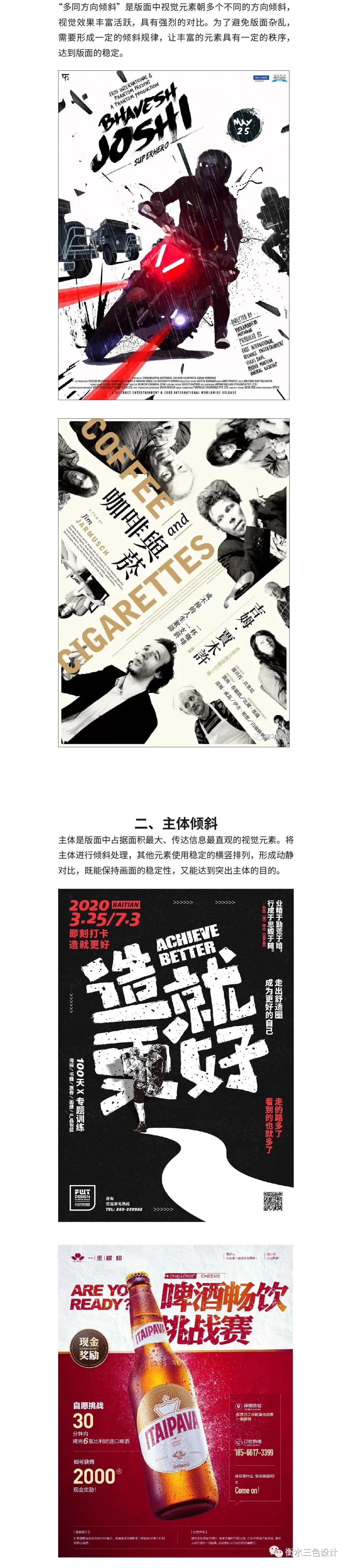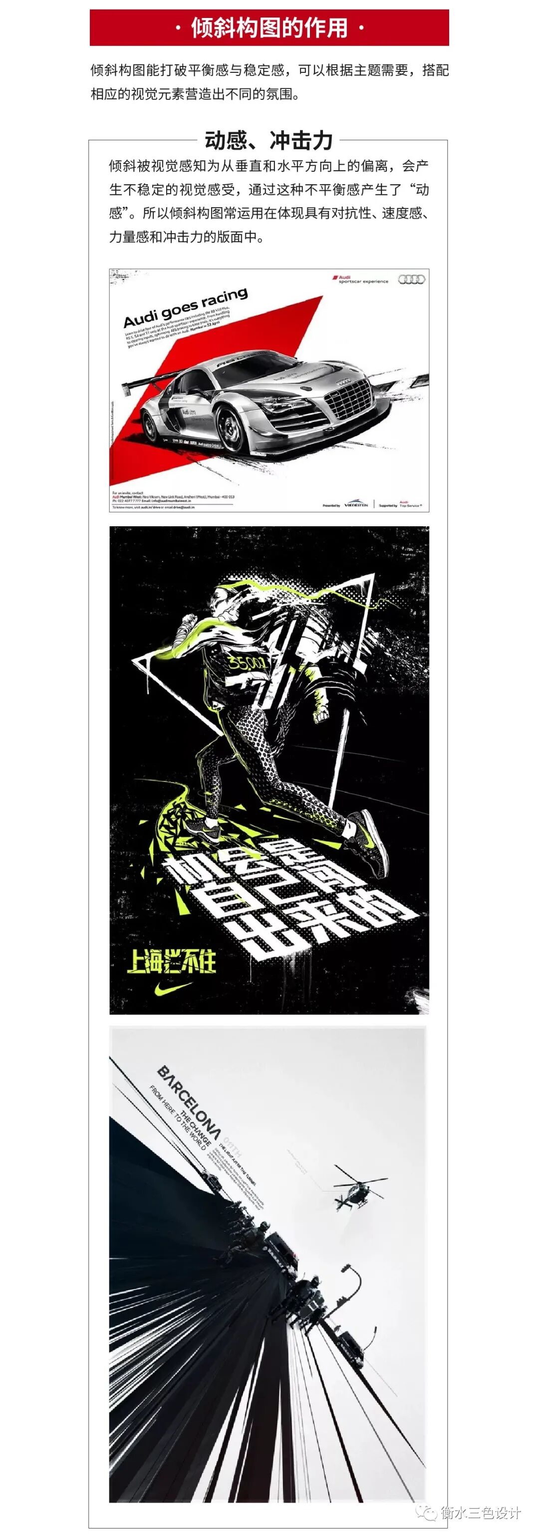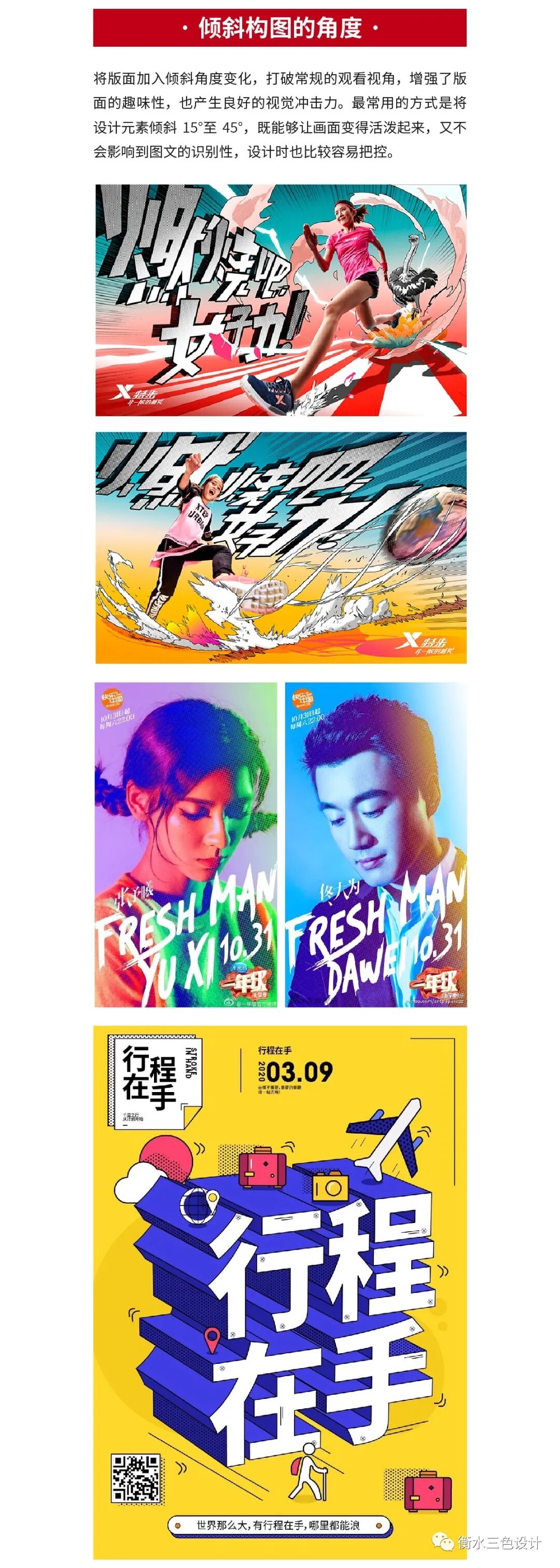 当想要设计更灵动活泼的版面,营造轻松、动感、刺激等氛围时,“倾斜构图”是更适合运用的构图表现形式,本期就来分析倾斜构图的使用方法。