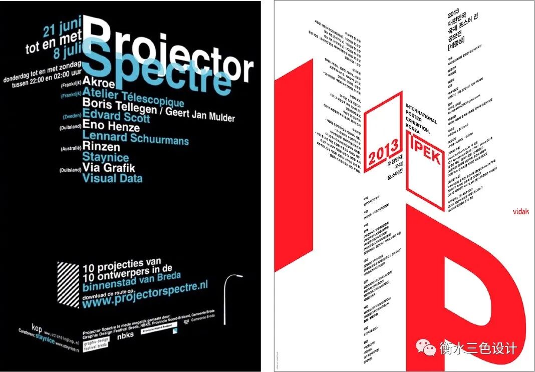 方案二设计「双方向倾斜」构图,是将设计元素朝两个对立的角度倾斜,产生了方向上的对比,可以形成视觉冲突,营造出空间立体感。参考案例如下:
