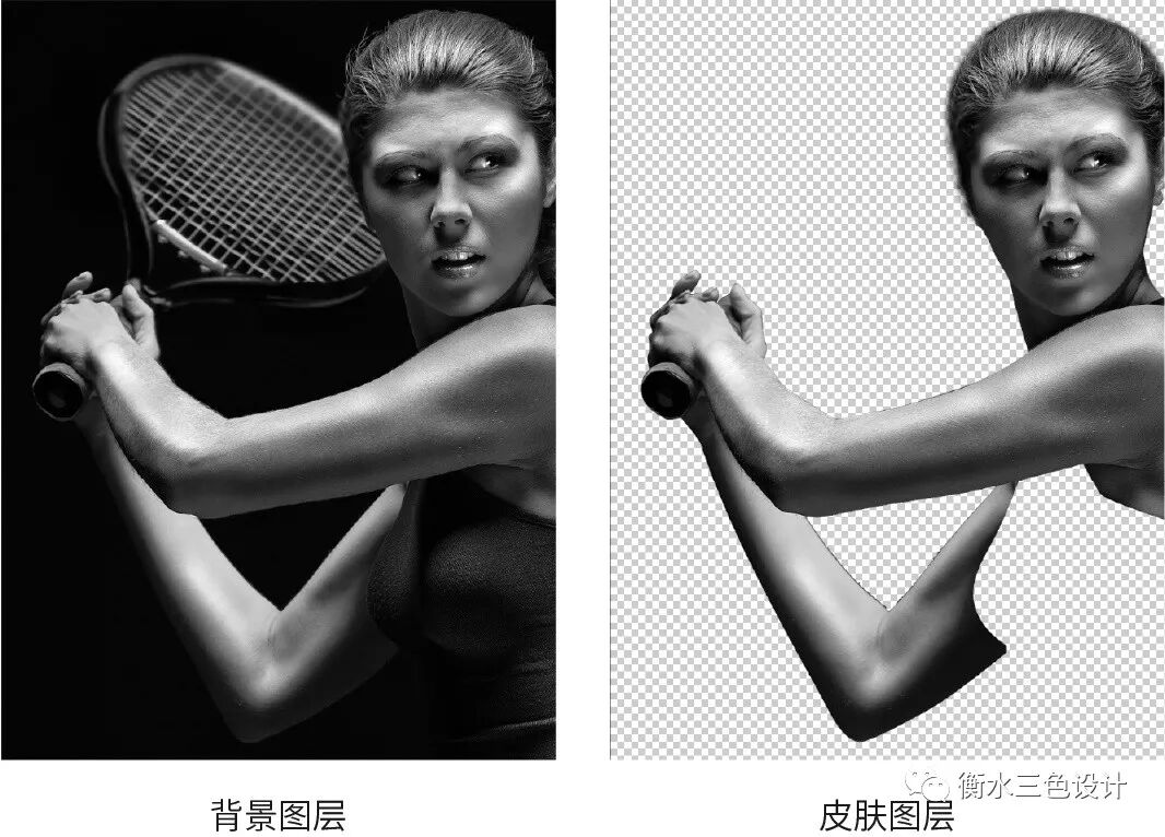 寻找黑白色调的运动人物素材,把人物皮肤部分与背景分离,新图层命名为「皮肤」。