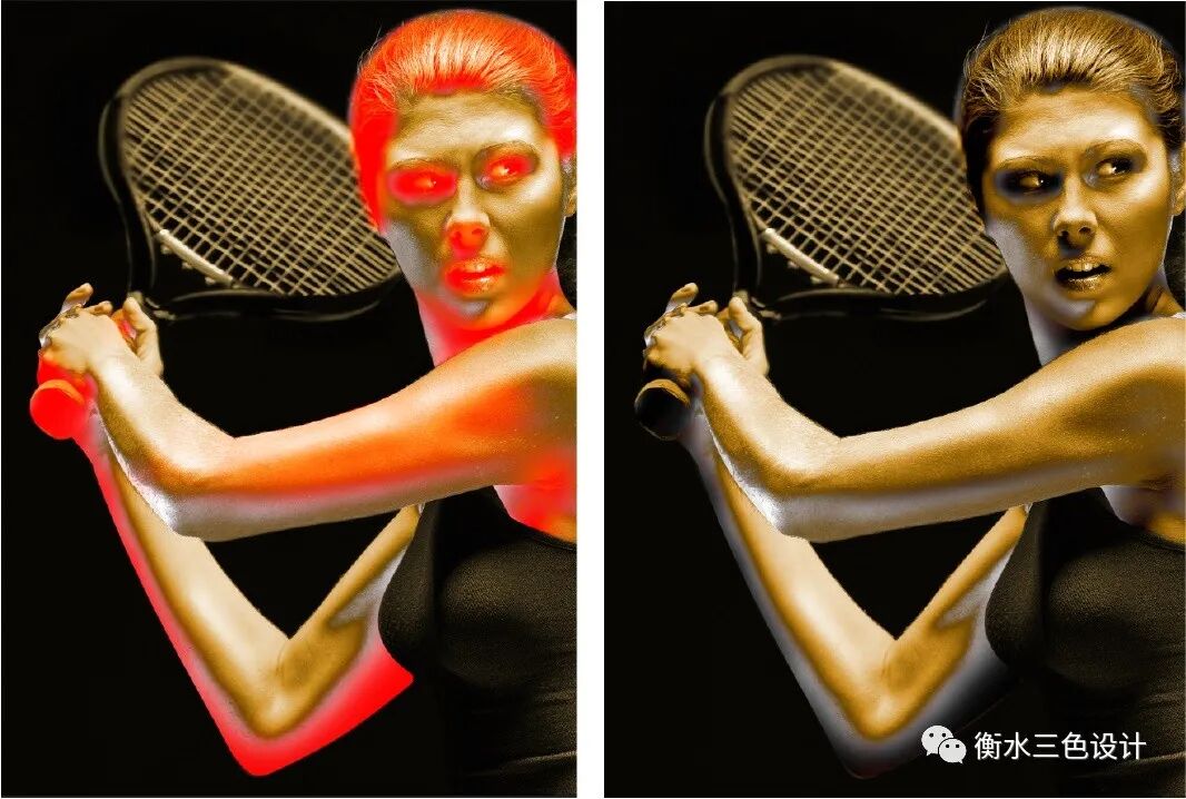 擦除不需要反光的五官、头发、部分皮肤(左图红色部分):