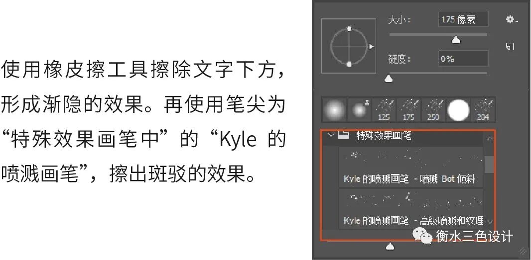 整体效果已经设计好,但版面还是比较平淡,缺少层次感。使用半透明的黑色画笔压暗画面边缘,形成聚光效果,让主体更突出;最后使用灰色画笔给主体文字添加光泽效果。设计完成: