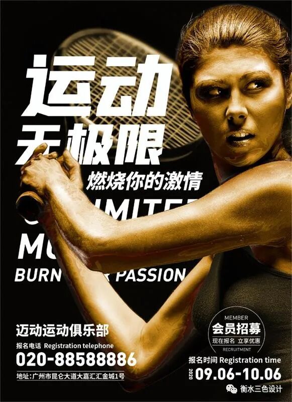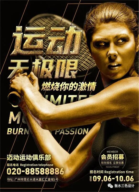 方案四尝试设计一款黑金风格海报,如图,画面具有良好的厚重感和力量感,可以产生强烈的视觉冲击力。